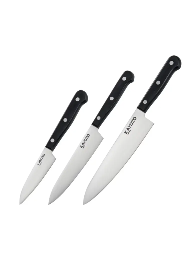 Набор японских кухонных ножей 3 в 1 KAYDZO TAHARA AUS-8 KT-3000 — это синтез многовековых традиций японских оружейников и прогрессивных инженерных разработок. Лезвия из высокоуглеродистой стали AUS-8 обладают исключительной износостойкостью, сохраняя безукоризненную остроту для безупречной работы с ингредиентами. В комплекте три профессиональных ножа: поварской, сантоку и универсальный, справляющихся с задачами любой сложности — от филигранной нарезки овощей до разделки мяса и рыбы.