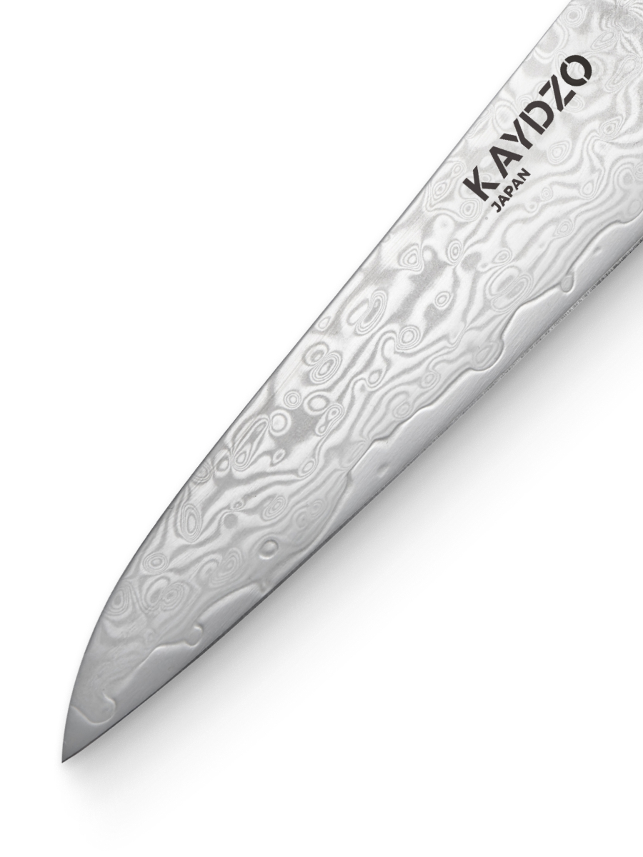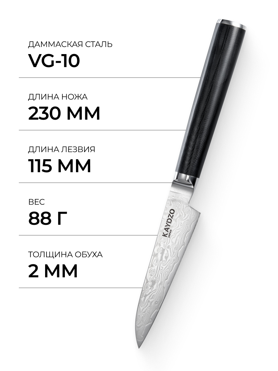 Японский кухонный нож KAYDZO TOKIN Damascus овощной KD-1000 — это идеальное сочетание точности, надежности и эстетики. Лезвие из дамасской стали премиум-класса отличается исключительной прочностью и износостойкостью, сохраняя остроту даже при интенсивной эксплуатации. Благодаря оптимальному содержанию углерода нож легко справляется с деликатной нарезкой овощей, гарантируя безупречный результат.