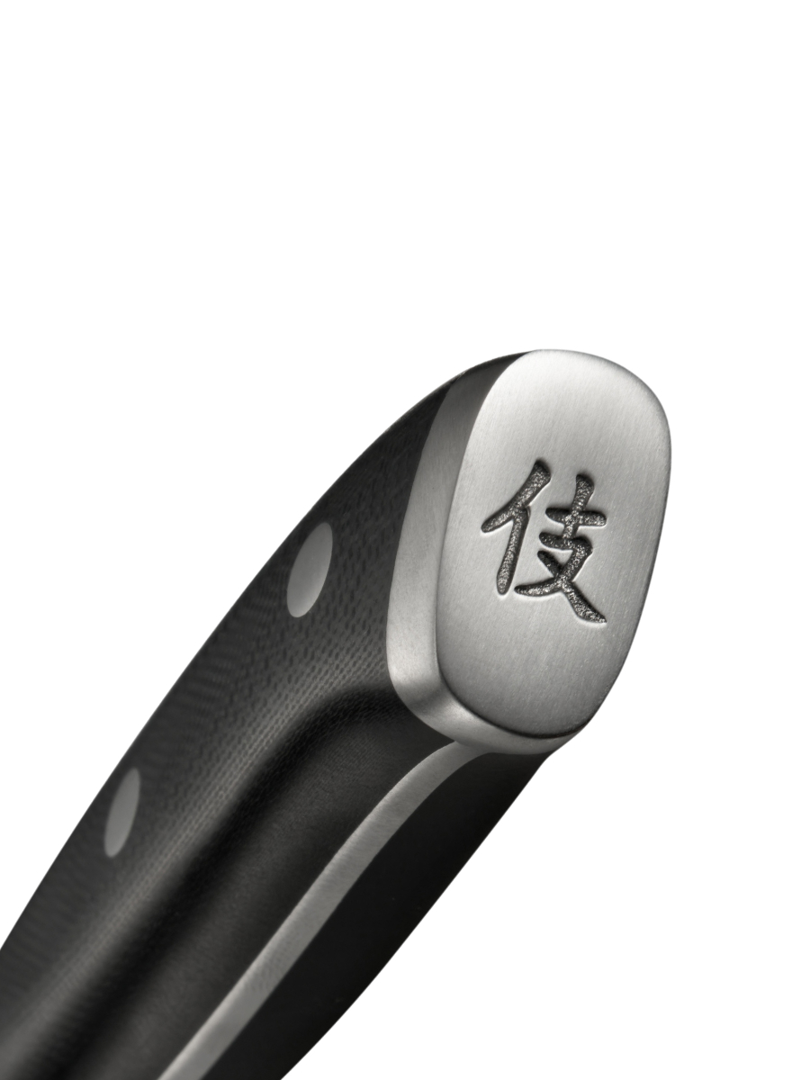 Эргономичная рукоять с влагоотталкивающим покрытием обеспечивает надежный хват и комфорт, минимизируя усталость рук при длительном использовании. Ее анатомическая форма продумана до мелочей, чтобы движения были точными и безопасными. Лаконичный дизайн ножа, вдохновленный японской философией «ваби-саби», подчеркивает гармонию функциональности и изящества.
