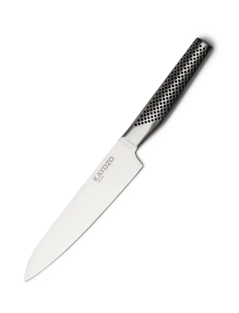 Японский нож KAYDZO KAMACHI универсальный AUS-8 KK-1500 — идеальный инструмент для ценителей точности и стиля. Лезвие из стали AUS-8 премиум-класса сочетает прочность и износостойкость, сохраняя остроту даже при интенсивном использовании. Благодаря оптимальному содержанию углерода нож легко справляется с тонкой нарезкой овощей, обеспечивая безупречный результат.